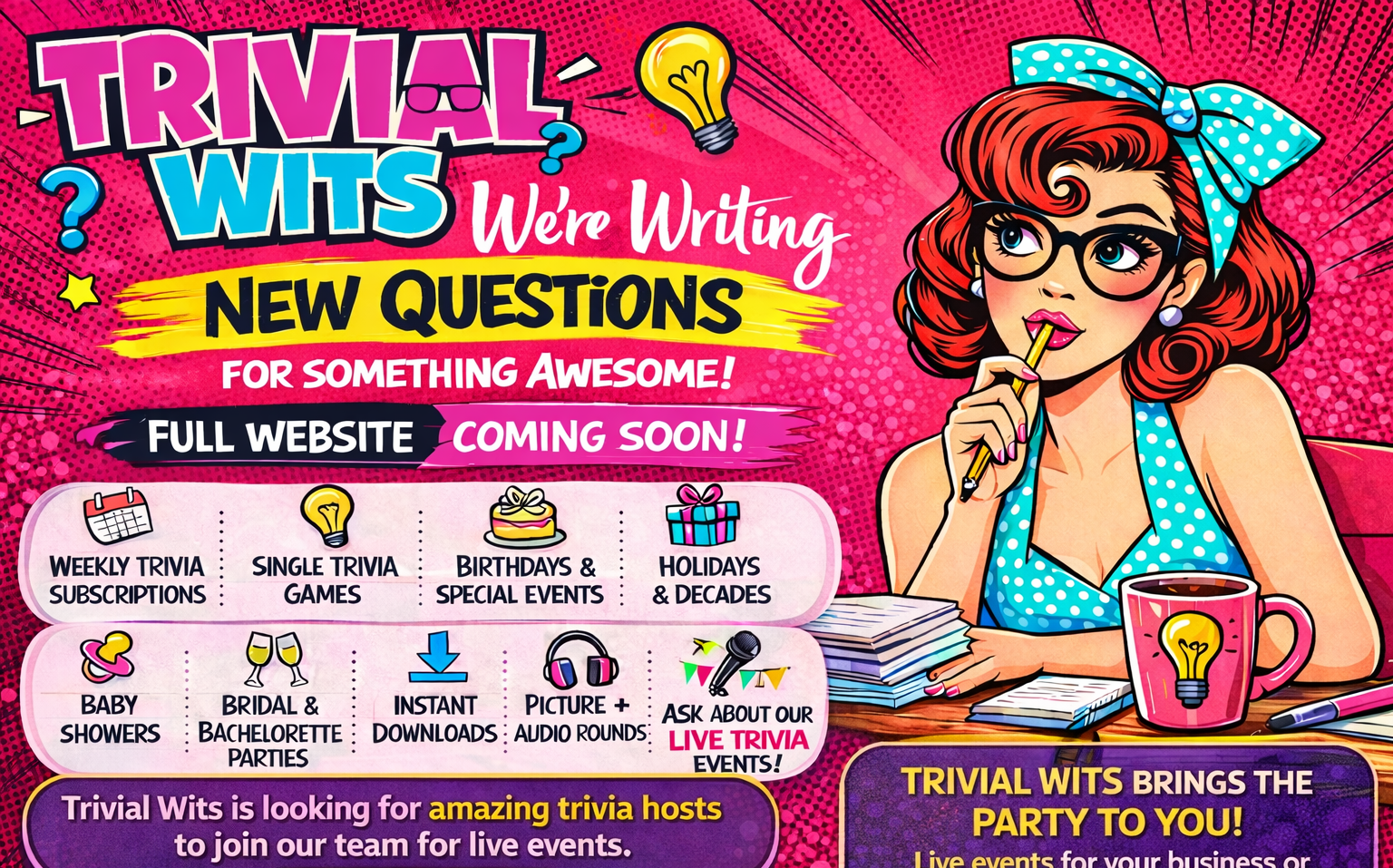 Fill out the form below and tell us what’s on your mind. Whether you're looking for live trivia at your bar or restaurant, custom games for a party, weekly trivia subscriptions, or a chance to host your own trivia events, we’d love to hear from you.